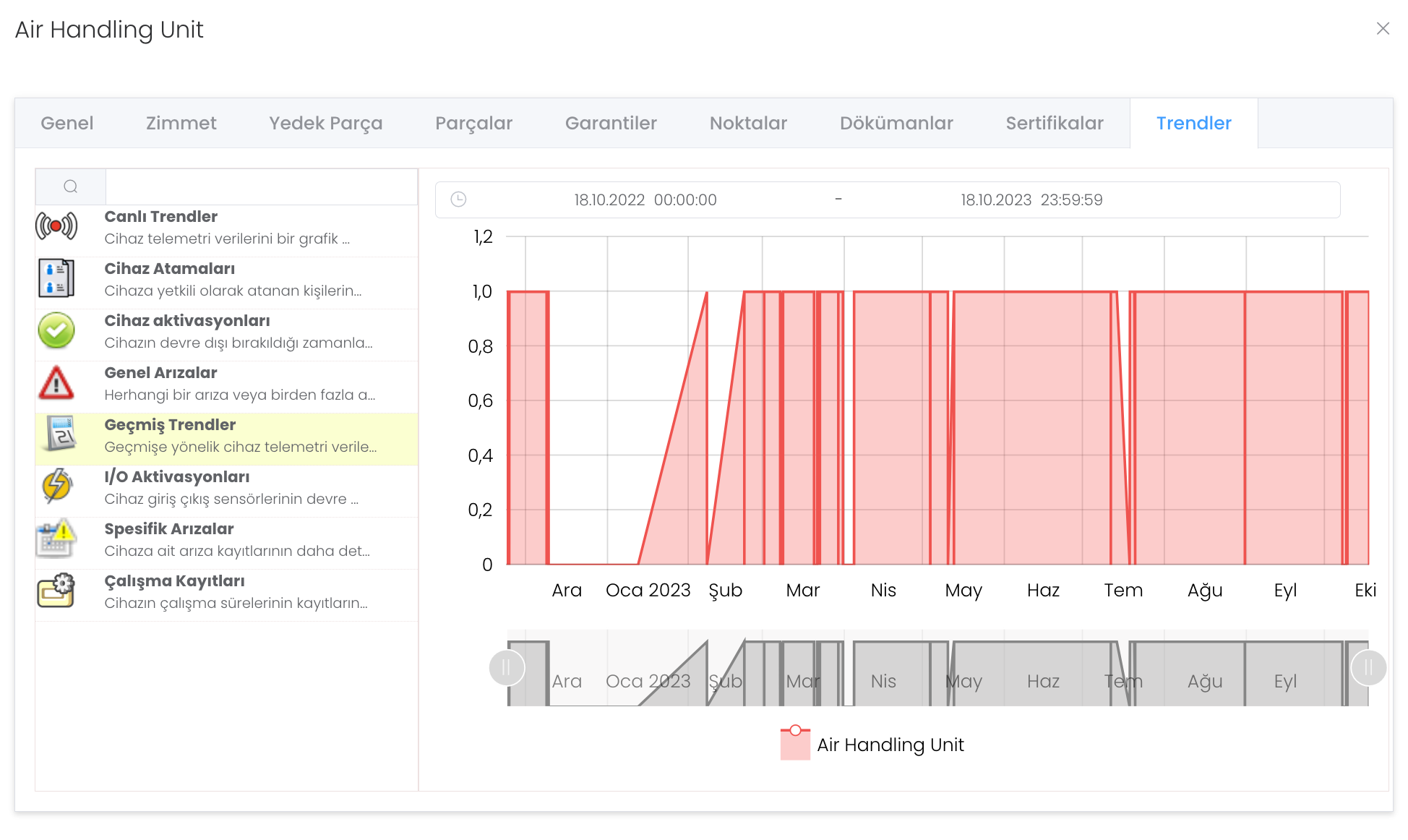 Geçmiş Trendler : Geçmişe yönelik cihaz telemetri verilerini görüntülemenizi sağlar.