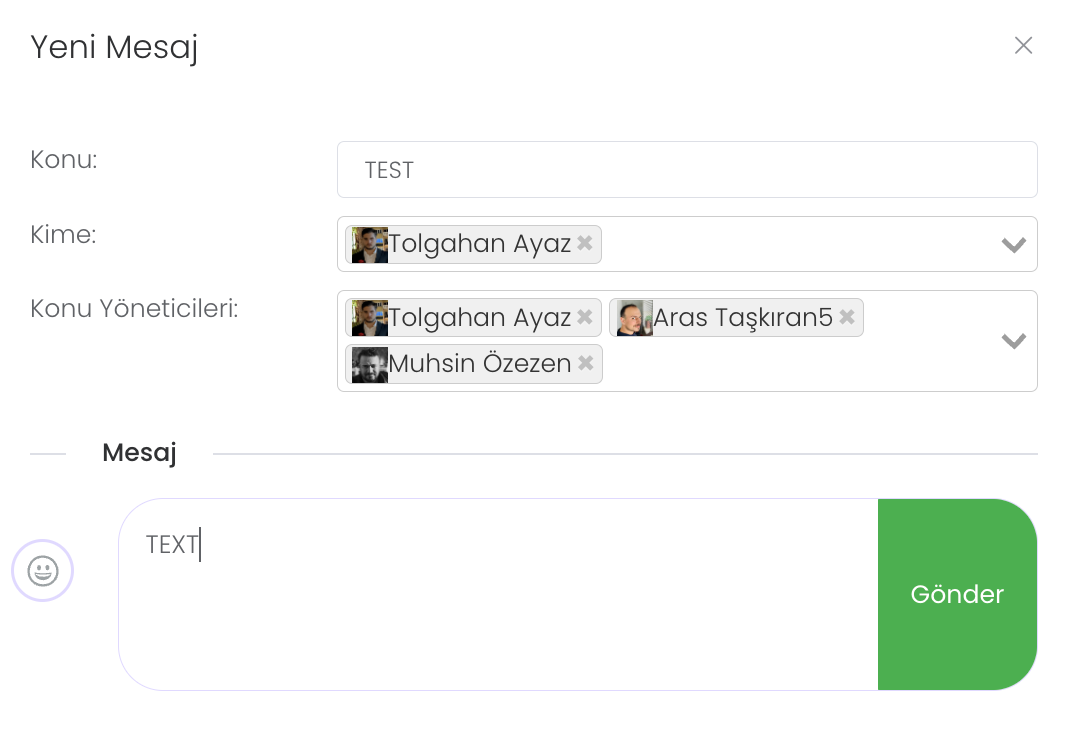 İletmek istediğiniz mesajı yazıp "Gönder" butonuna tıkladığınızda istediğiniz kişilere mesaj iletilecek ve onlarında cevap verebileceği özel bir mesaj odası oluşturulacaktır.