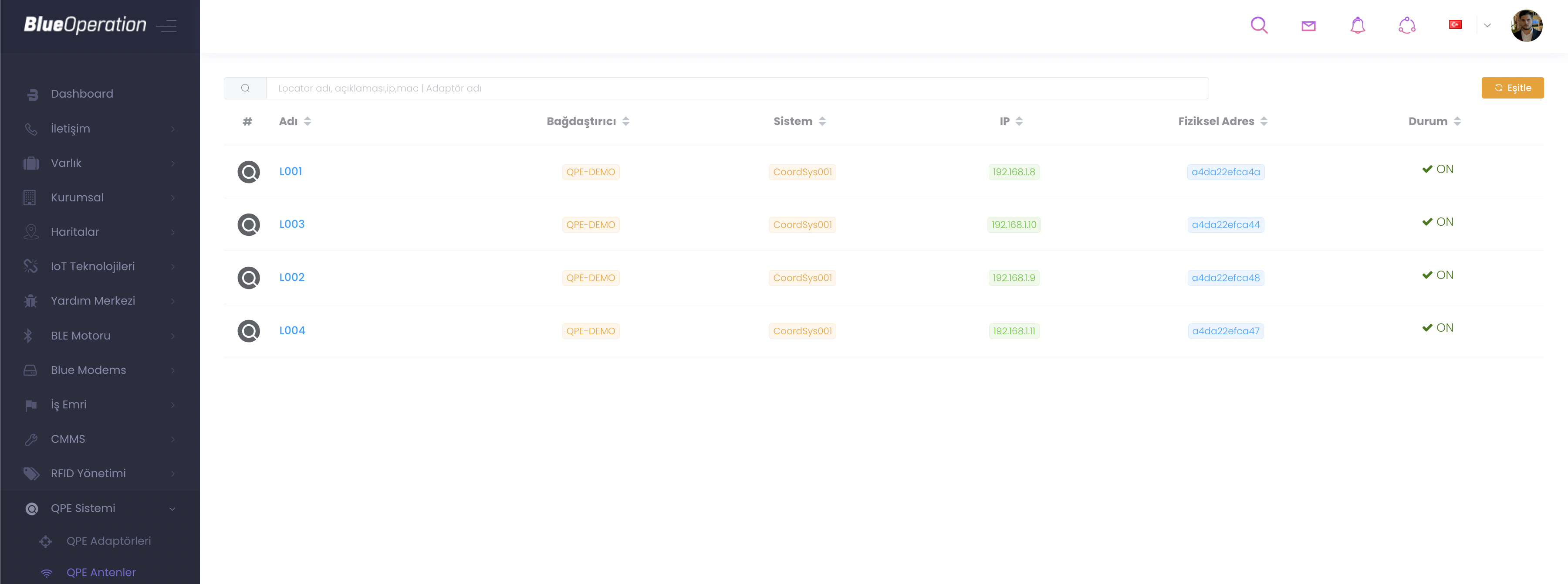 Bu yazılımın antenler bölümünü yönetmek için kullandığımız panel "QPE Antenler" panelidir. Bu panelde kayıtlı antenleri yönetebilir, diğer antenlerle eşitleyebilirsiniz.