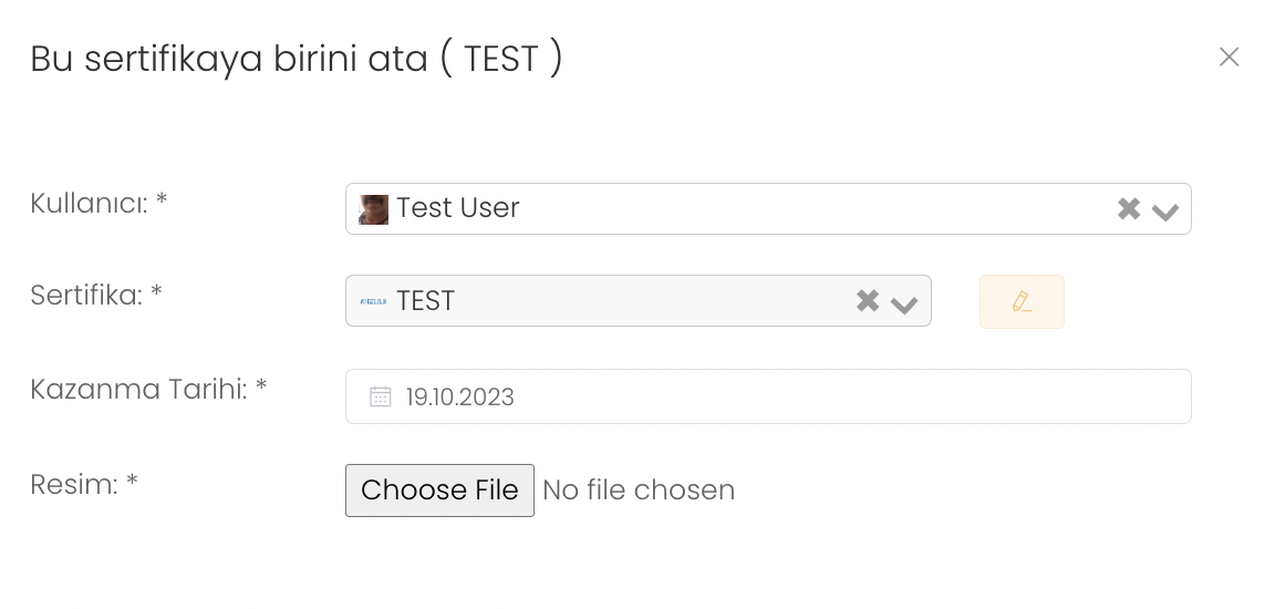 “Atama” butonuna bastığımızda bir kullanıcıyı bir sertifikaya atayabilir görsel ile destekleyebilir tarihleri değiştirebilirsiniz.