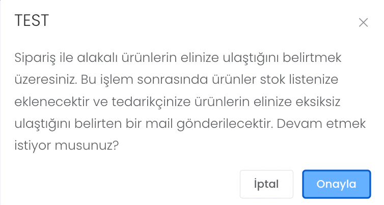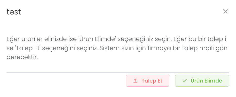 Talep gönderdiğimiz ürün tamamlandıysa “Tamamla” seçeneğini tıkladığınızda böyle bir uyarı mesajı alırsınız.