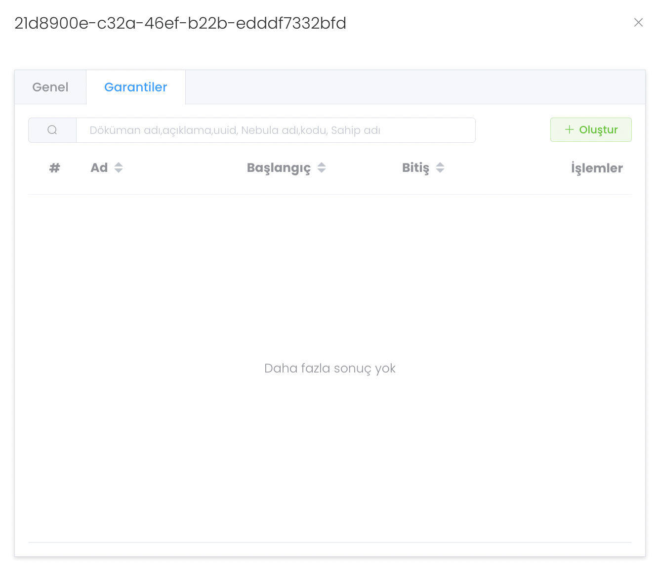 Garantiler bölümünden mevcut garantiyi yönetebilir dokümanı indirebilir ve düzenleyebilirken yeni garanti oluşturabilir ve gerekli dosyayı yükleyebilirsiniz.