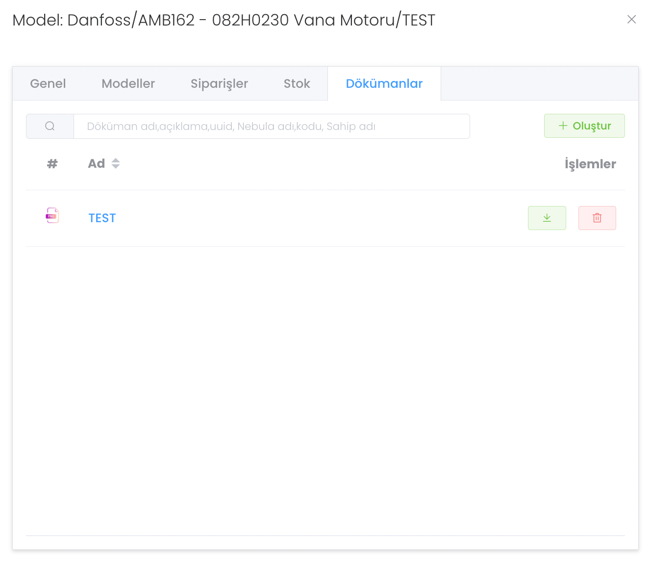 Dokümanlar kısmı da garantiler ile aynı mantıkla işler var olan dokümanı yönetip indirebilirken yenisini oluşturup gerekli dosyayı yükleyebilirsiniz.