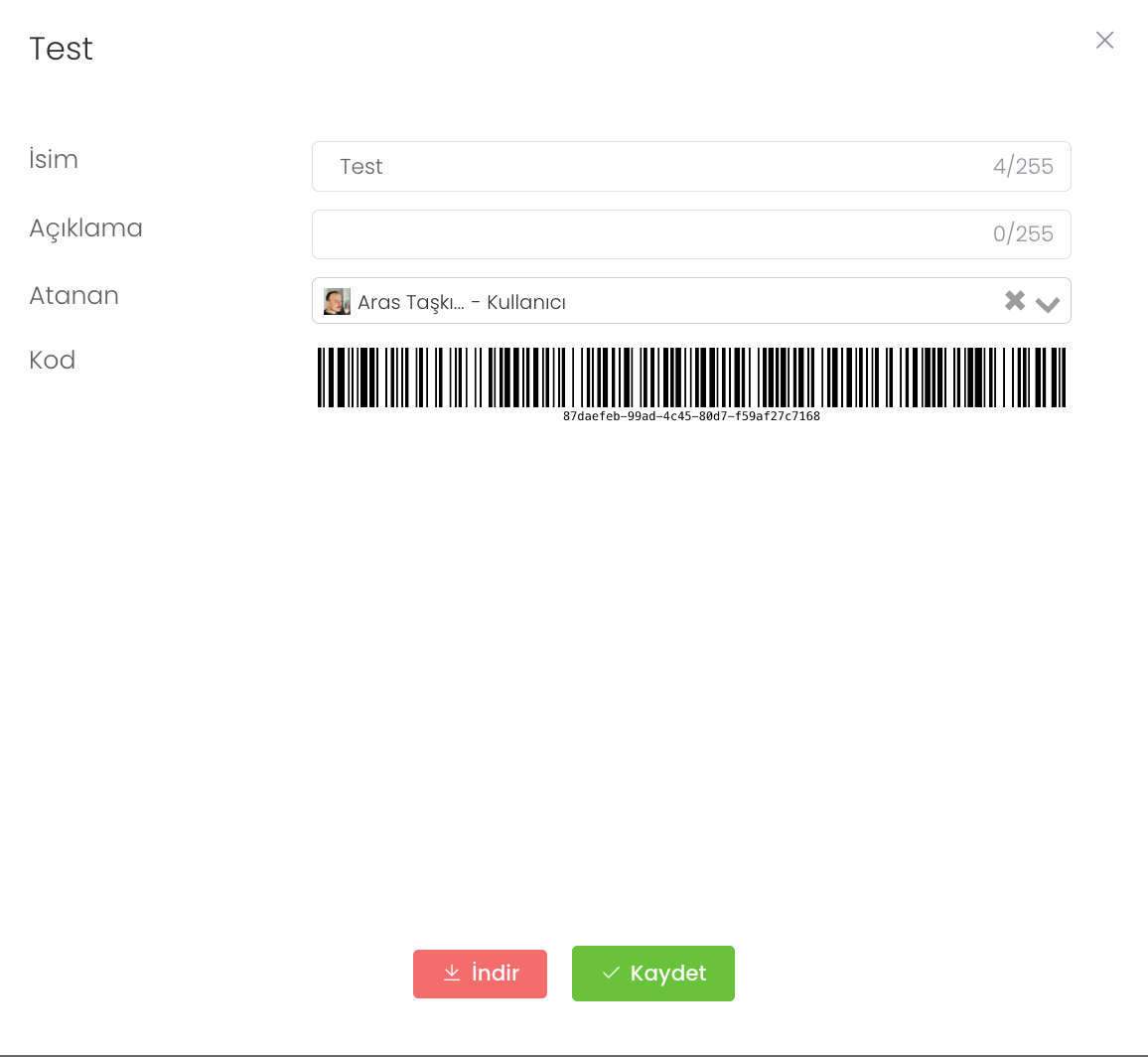 Barcode oluşturma sırasında isim, açıklama gibi verileri girdikten sonra bu kodu bir çalışan, yönetici veya ürüne atamamız gerekir. Atanan bölümünden bu durumu yönetebilirsiniz.