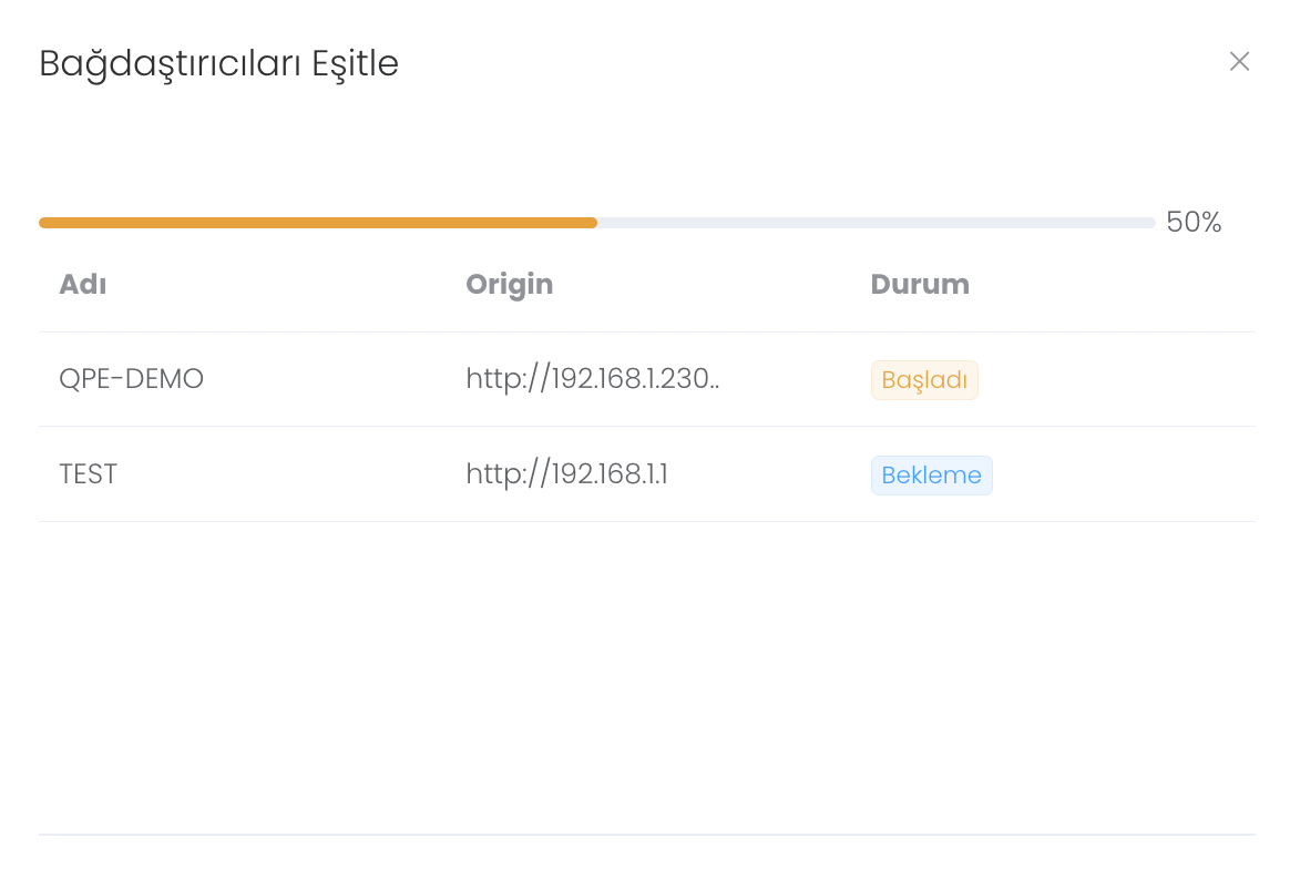 "Eşitle" butonuna tıkladığımızda iki veya daha fazla adaptörünüz varsa bunları birbirine eşitleyen ve başarı oranını gösteren bir yapı sunar.