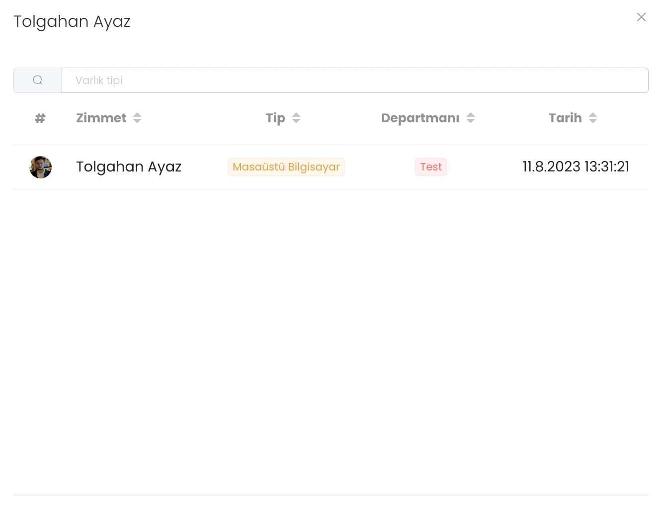 Sağ tarafta bulunan “Tarihçe” kısmından envanterin zimmetli olduğu kişiyi, departmanı ve tarihi detaylı olarak izleyebilirsiniz.